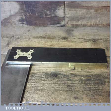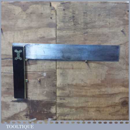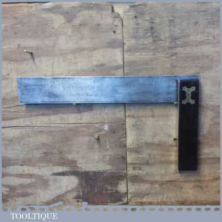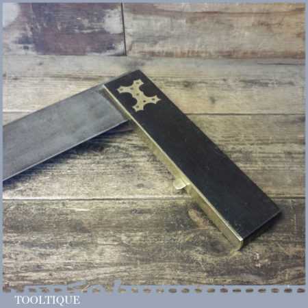 Large vintage carpenters ebony and brass 18 ½” try square with brass support, in good used condition. These are pretty scarce and hard to find in this size.