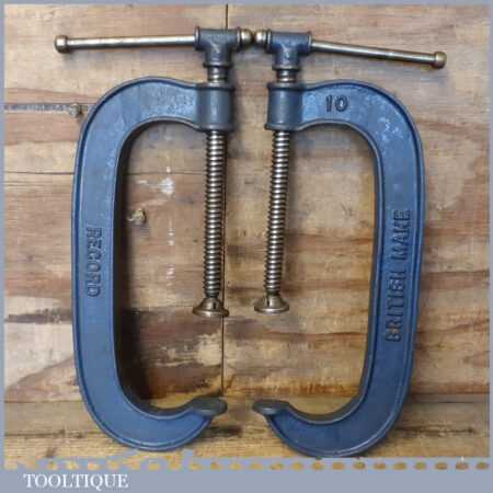 Large vintage pair of Record 10” woodworking ‘G’ clamps in good used condition and ready for use