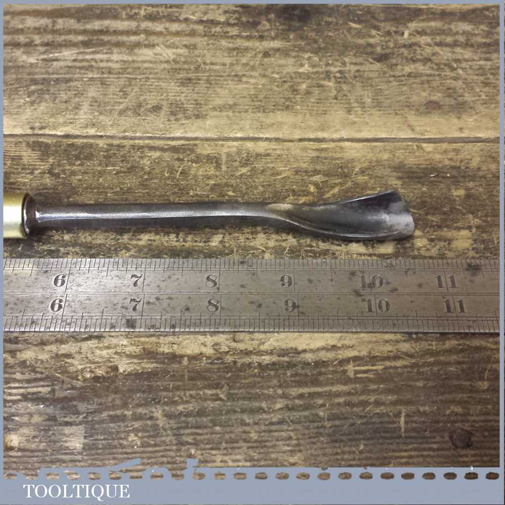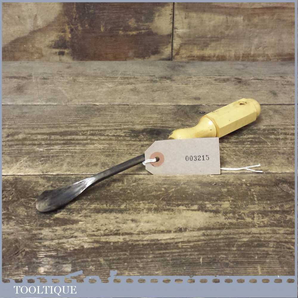 Large vintage patternmaker’s 29/32” wide spoon gouge carving chisel with boxwood handle in good used condition. The chisel has been sharpened and honed ready for use.