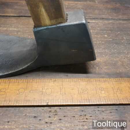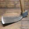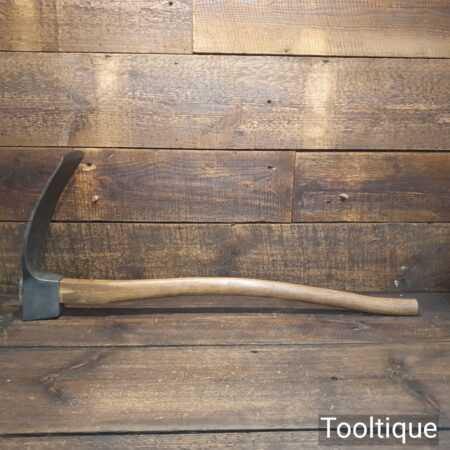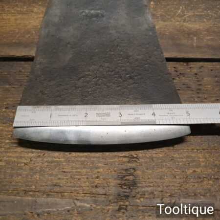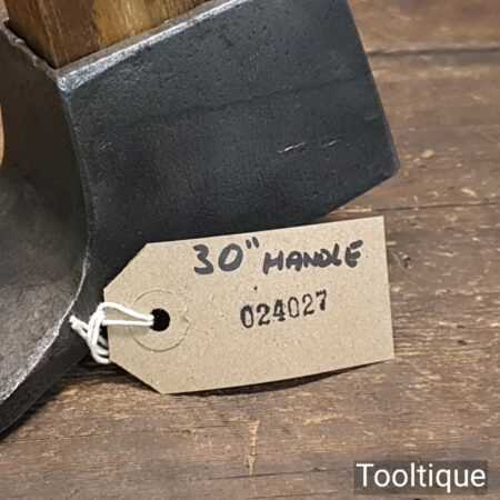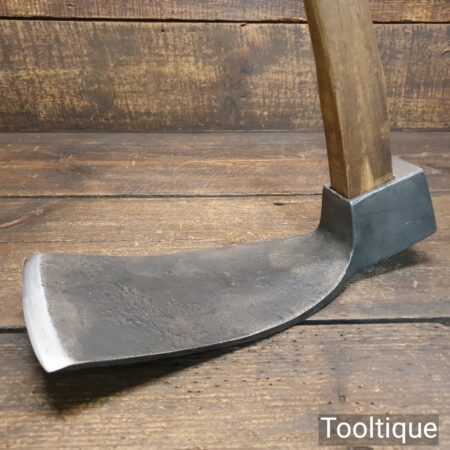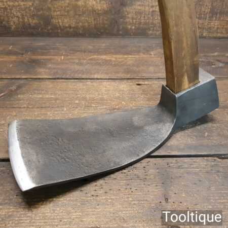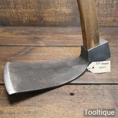 Large vintage wheelwright’s adze with 30″ hickory handle, in good used condition, fully refurbished, sharpened and honed ready for use. The adze face has been smoothed off and sharpened (water cooled) to ensure it creates a good clean cut and can be sharpened again with ease. This is a 5” wide adze and a really good long length head