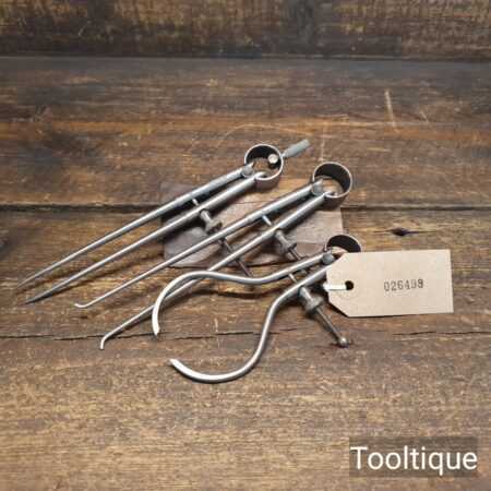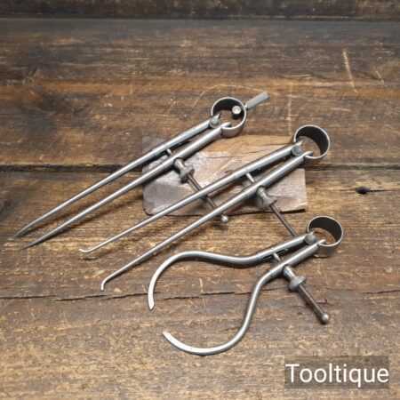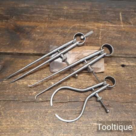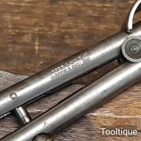 Lovely vintage Set of 3 No: Moore & Wright Cast steel spring dividers (Outside, Inside and Straight). Measuring 7″ for two dividers and 5″ for the other, in good lightly used condition.