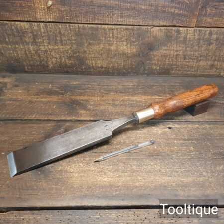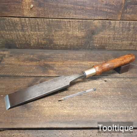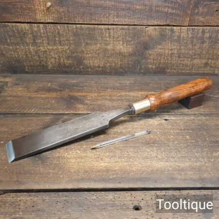 The chisel has been checked to ensure the tang is seated properly and the handle is solid and fit for use. All refurbished chisels are water-cooled during the sharpening & flattening process to ensure the tempering is not affected.