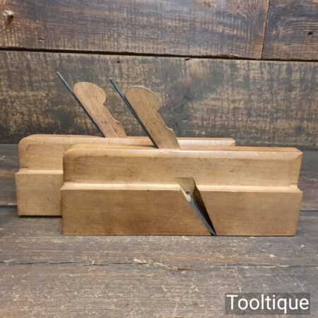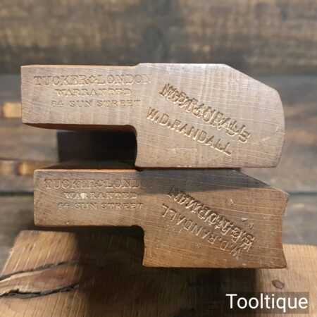 Crisp matched pair of antique Tucker, London (64, Sun St, 1867-1870) No: 14 hollow and round beechwood moulding planes in excellent used condition