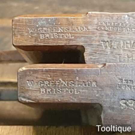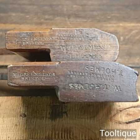 Matched pair of vintage W. Greenslade, Bristol No: 10 hollow and round beechwood moulding planes with skew irons in good used condition.