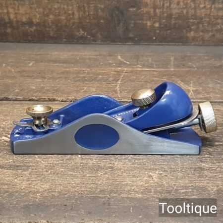 Modern Record No: 060 ½ adjustable throat block plane, fully refurbished ready for use and in good used condition. Note: The sole on the modern plane was far from being in plain and the iron with its rough milled finish has now been rectified and nor works better than new. When refurbishing planes, we do not merely clean them to make them look good, they are restored to a level that ensures this plane is actually ‘in plane to within 0.01mm’ sharpened, honed and all the components are thoroughly cleaned so that they move freely. Our planes are specifically reconditioned to satisfy professional tradesmen who will instantly know the difference between buying one of our planes over general other used ones.