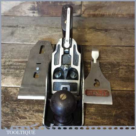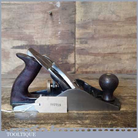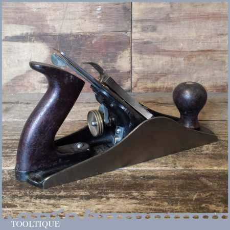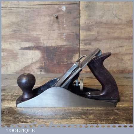Modern Stanley England No: 4 ½ wide bodied smoothing plane refurbished, ready to use and in good used condition. Note: fitted with plastic handles.