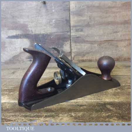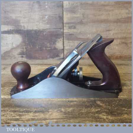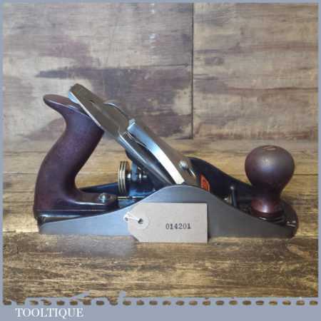 Modern Stanley England No: 4 ½ wide bodied smoothing plane, fully refurbished ready to use and in good used condition.