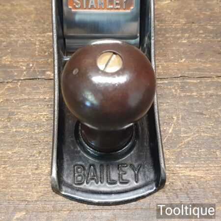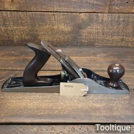Modern Stanley England No: 5 jack plane, fully refurbished and in good used condition, ready to use. Note: Although modern with plastic handles this has been fully set up and fettled and is a world away from standard new planes.