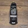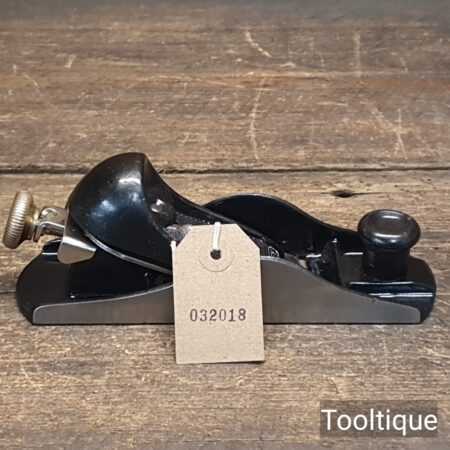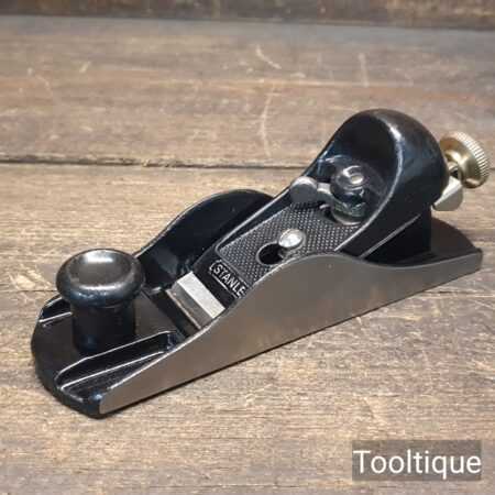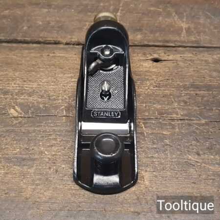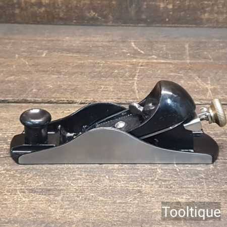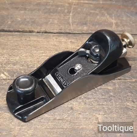 Modern Stanley No: 220 adjustable block plane, fully refurbished ready for use and in good used condition. Note: The sole on the modern plane was far from being in plain and the iron with its rough milled finish has now been rectified and nor works a treat, this took more time in labour than the price charged. When refurbishing planes, we do not merely clean them to make them look good, they are restored to a level that ensures this plane is actually ‘in plane to within 0.01mm’ sharpened, honed and all the components are thoroughly cleaned so that they move freely. Our planes are specifically reconditioned to satisfy professional tradesmen who will instantly know the difference between buying one of our planes over general other used ones.