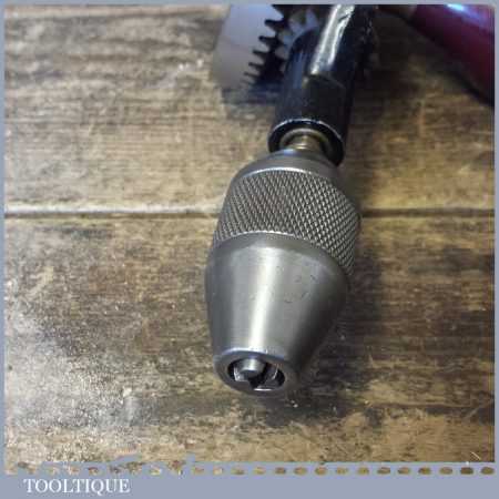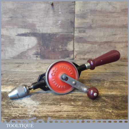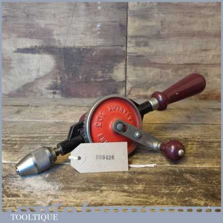 Modern Stanley No: 803 egg beater double pinion hand drill refurbished so all parts move freely and it is in good used condition ready for use.