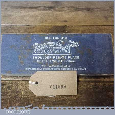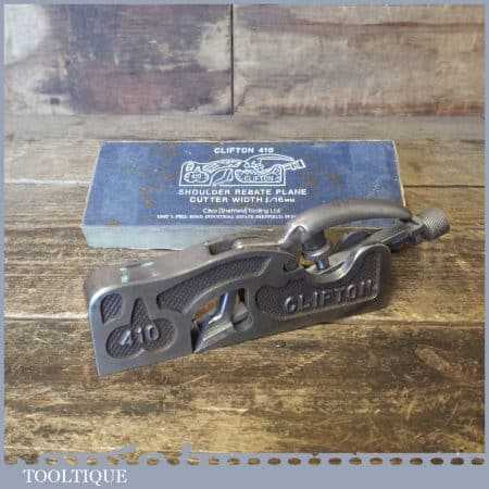 Near mint boxed Clifton No: 410 shoulder plane with 5/8” cutter, in little used condition.