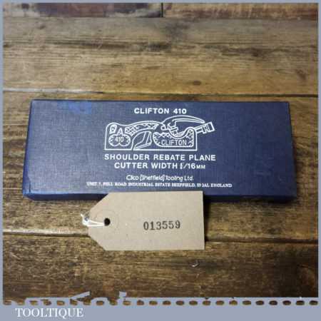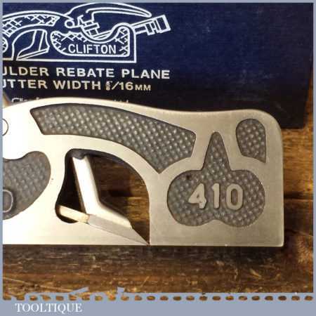 Near mint boxed Clifton No: 410 shoulder plane with 5/8” cutter, in little used condition.