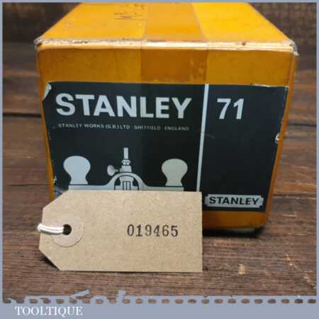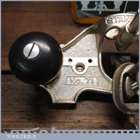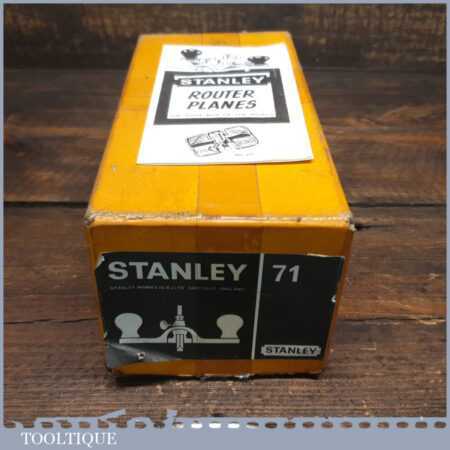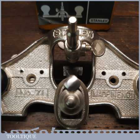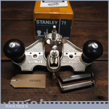 Near mint boxed Stanley England No: 71 hand router plane complete with fence, depth stop and 3 irons and in little used condition