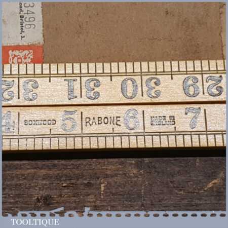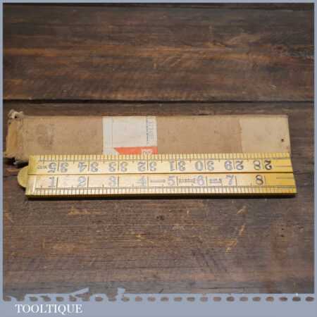 Near mint vintage 2ft Rabone boxwood and brass No: 1167 folding rule in original wrapper and little used condition.