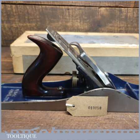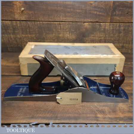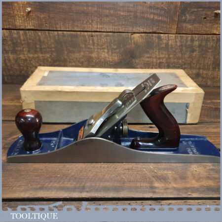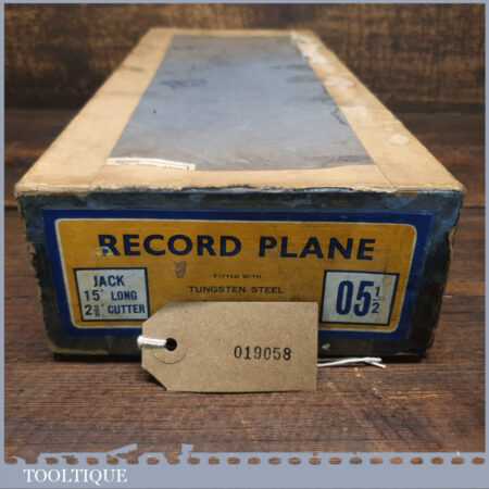 Near mint vintage boxed Record No: 05 ½ fore plane, fully refurbished ready to use and in good used condition. Manufactured between 1952-58. Note: Box has had repairs but has done its job by protecting this plane.