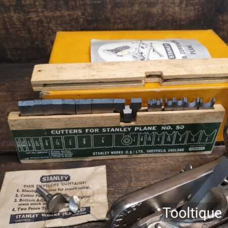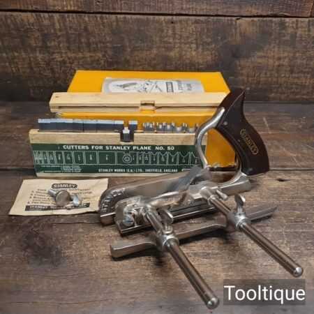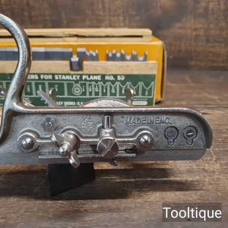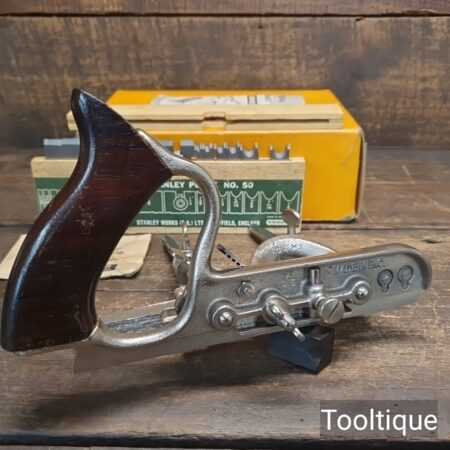Near Mint Vintage Boxed Stanley England No: 50 combination plough plane, complete and in good used condition. Note: This plane has seen little use.