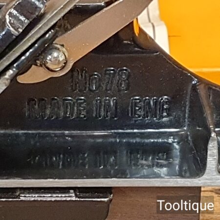 Near Mint Vintage Boxed Stanley England No: 78 Duplex Rabbet Plane, refined ready for use and in good used condition. When refurbishing planes, we do not merely clean them to make them look good, they are restored to a level that ensures this plane is actually ‘in plane to within 0.01mm’ sharpened, honed and all the components are thoroughly cleaned so that they move freely. Our planes are specifically reconditioned to satisfy professional tradesmen who will instantly know the difference between buying one of our planes over general other used ones.