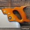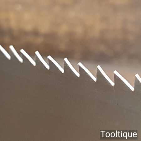 The saw has been thoroughly cleaned, jointed, resharpened and set by hand so that all the hard work of getting an old vintage saw right has been undertaken. We do this so that the next sharpening is easier and no more than a quick freshen up would be required. Those who are familiar with sharpening will know this is no small job and requires skill, effort and time to achieve good results.