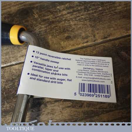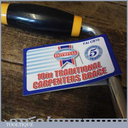 New Modern Faithful carpenters ratchet brace with a 10” sweep in good unused condition. Note. These braces can still be bought new with an RRP of around £35.00.