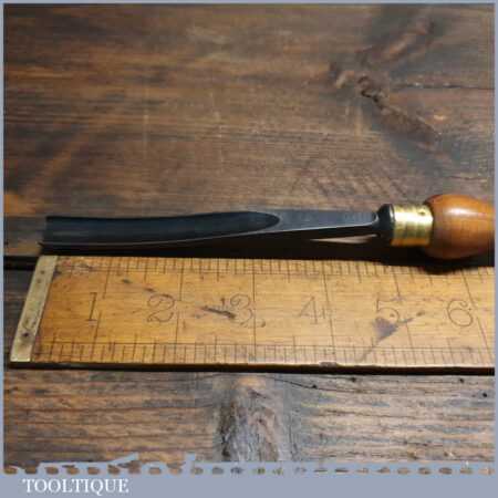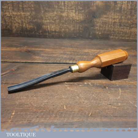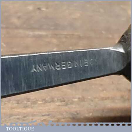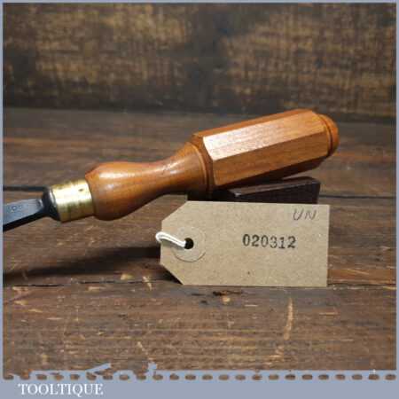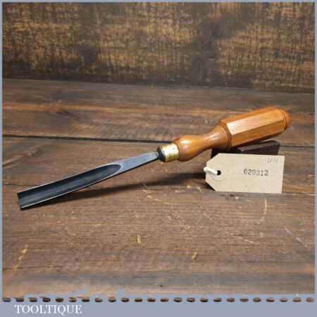 New Old Stock vintage German made “Hero” 1/2” No: 18 curved wood carving gouge chisel. These chisels can be compared to Ward & Payne for their superior quality steel, I’ve always been impressed how tough the steel is when sharpening and how good an edge these hold. This chisel is one of a batch we found which have never been handled or sharpened, they are just as they left the factory many years ago. We just fitted a new hardwood handle but left the sharpening to the new owner to complete the job. Rarely do these old un-used carving tools come up for sale and are an excellent choice for the discerning woodcarver