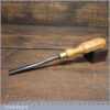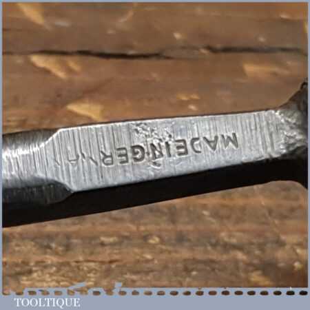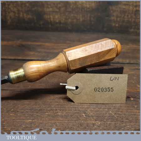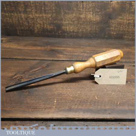 New Old Stock vintage German made “Hero” 3/8” No: 11 straight wood carving gouge chisel. These chisels can be compared to Ward & Payne for their superior quality steel, I’ve always been impressed how tough the steel is when sharpening and how good an edge these hold. This chisel is one of a batch we found which have never been handled or sharpened, they are just as they left the factory many years ago. We just fitted a new hardwood handle but left the sharpening to the new owner to complete the job. Rarely do these old un-used carving tools come up for sale and are an excellent choice for the discerning wood carver.
