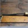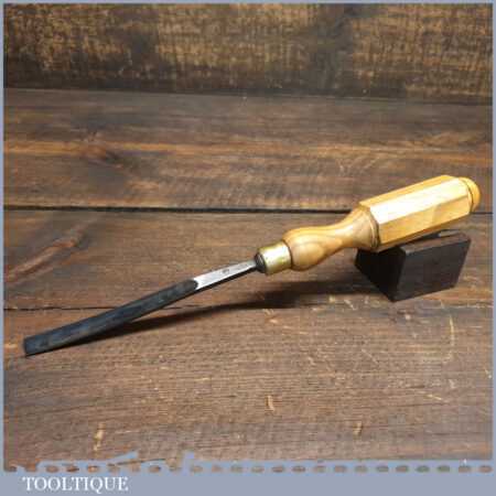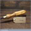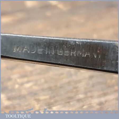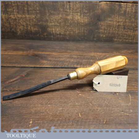 New Old Stock vintage German made “Hero” 3/8” No: 13 curved wood carving gouge chisel. These chisels can be compared to Ward & Payne for their superior quality steel, I’ve always been impressed by how tough the steel is when sharpening and how good an edge these hold. This chisel is one of a batch we found which have never been handled or sharpened, they are just as they left the factory many years ago. We just fitted a new hardwood handle but left the sharpening to the new owner to complete the job. Rarely do these old unused carving tools come up for sale and are an excellent choice for the discerning woodcarver.