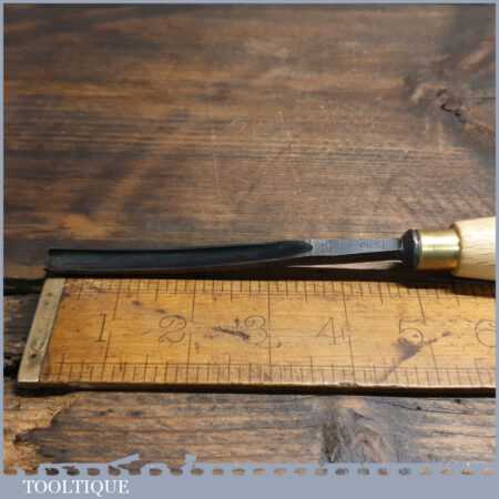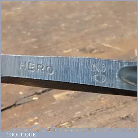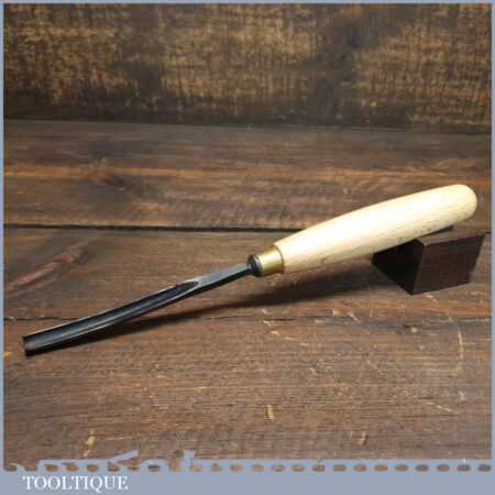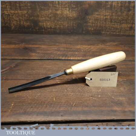 New Old Stock vintage German made “Hero” 3/8” No: 20 curved woodcarving gouge chisel. These chisels can be compared to Ward & Payne for their superior quality steel, I’ve always been impressed how tough the steel is when sharpening and how good an edge these hold. This chisel is one of a batch we found which have never been handled or sharpened, they are just as they left the factory many years ago. We just fitted a new hardwood handle but left the sharpening to the new owner to complete the job. Rarely do these old un-used carving tools come up for sale and are an excellent choice for the discerning wood carver.