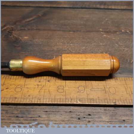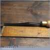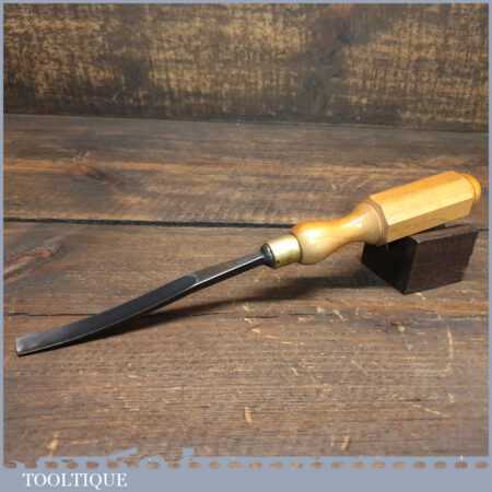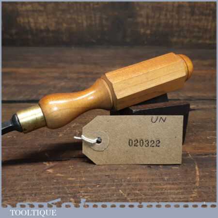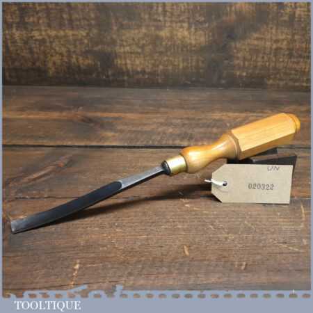 New Old Stock vintage German made “Hero” 7/16” No: 12 curved wood carving gouge chisel. These chisels can be compared to Ward & Payne for their superior quality steel, I’ve always been impressed how tough the steel is when sharpening and how good an edge these hold. This chisel is one of a batch we found which have never been handled or sharpened, they are just as they left the factory many years ago. We just fitted a new hardwood handle but left the sharpening to the new owner to complete the job. Rarely do these old un-used carving tools come up for sale and are an excellent choice for the discerning wood carver
