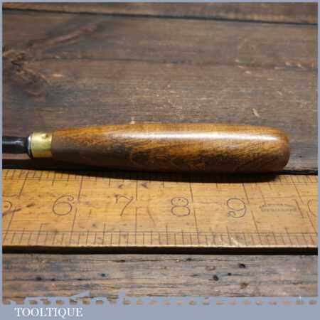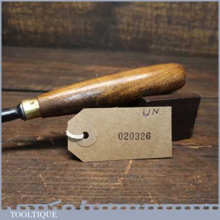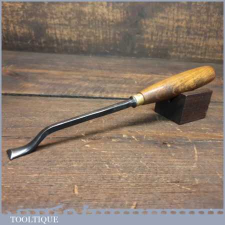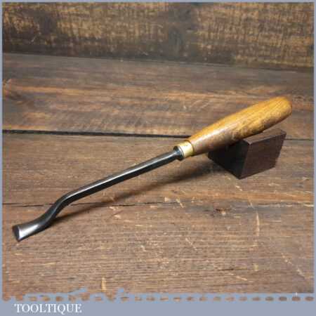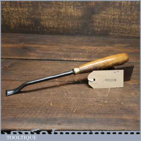 New Old Stock vintage Henry Taylor 1/2” No: 37 wood carving bent back spoon gouge chisel. This is an earlier made chisel which always seem to have better qualities when sharpening them, this is compared to their later tools. This chisel is one of a batch we found which have never been handled or sharpened, they are just as they left the factory many years ago. We just fitted a new hardwood handle but left the sharpening to the new owner to complete the job. Rarely do these old un-used carving tools come up for sale and are an excellent choice for the discerning wood carver