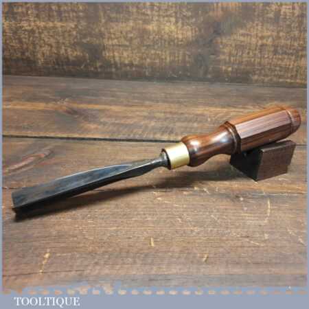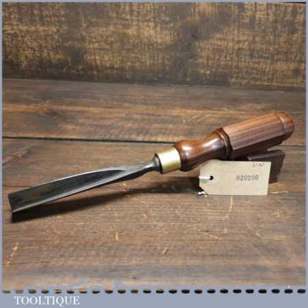 New Old Stock vintage Henry Taylor ‘Acorn Brand’ 3/4” No: 39 straight wood carving “V” parting chisel. This is an earlier made chisel which always seem to have better qualities when sharpening them, this is compared to their later tools plus this has a far superior handle. This chisel is one of a batch we found which have never been handled or sharpened, they are just as they left the factory many years ago. We just fitted a new hardwood handle but left the sharpening to the new owner to complete the job. Rarely do these old un-used carving tools come up for sale and are an excellent choice for the discerning wood carver