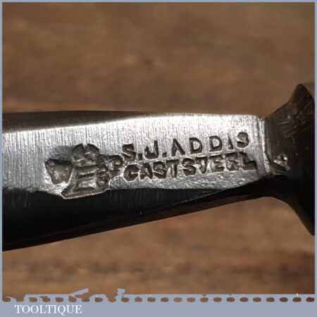 New Old Stock vintage S.J. Addis 3/4” No: 11 straight wood carving deep gouge chisel. Also Stamped with the Ward and Payne Logo and superior quality steel when compared with the best-known brands making carving tools today. This chisel is one of a batch we found which have never been handled or sharpened, they are just as they left the factory many years ago. We just fitted a new hardwood handle but left the sharpening to the new owner to complete the job. Rarely do these old un-used carving tools come up for sale and are an excellent choice for the discerning wood carver