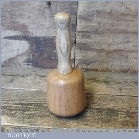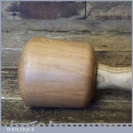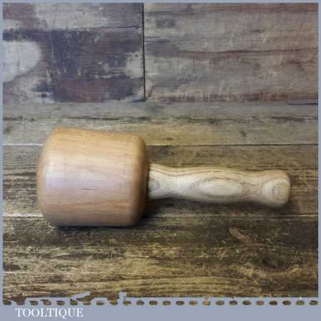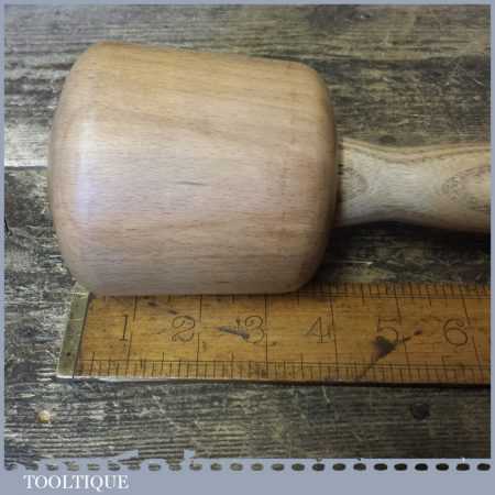 Nice beech wood woodcarving mallet with 4” wide head and ash handle, this tool is in unused condition.