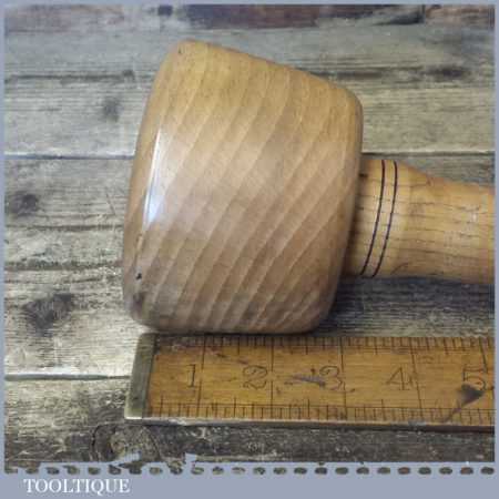 Nice beechwood woodcarving mallet with 4” wide head and ash handle, this tool is in used condition.