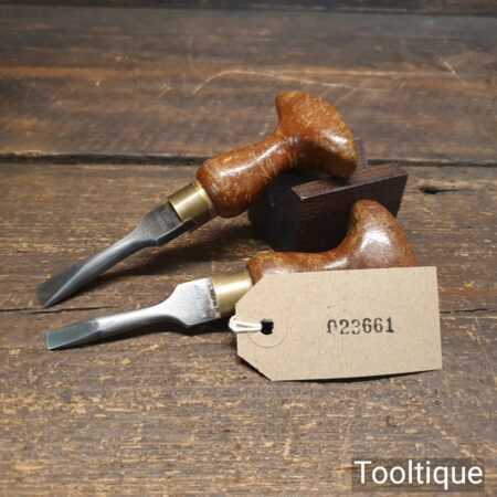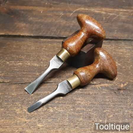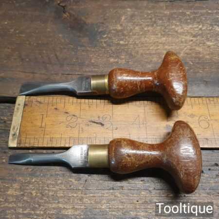 Nice pair of W. Marples & Sons carpenter’s short strong cabinet blade screwdrivers (with 1/4” & 1/2” tips) and with rosewood crutch handles and its original lacquer, in good used condition. These are a really nice pair and the first I’ve seen in this condition.