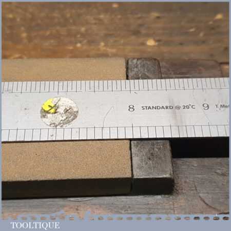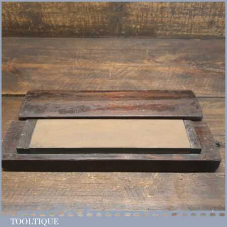 Nice vintage 8”x 2” India oil stone in a nice mahogany box and in good used condition. Note: lapped flat ready for use.