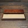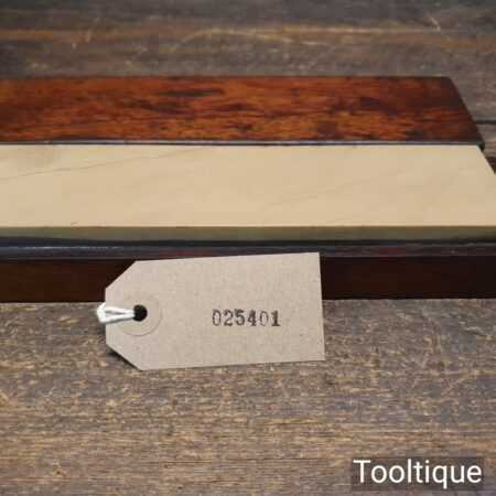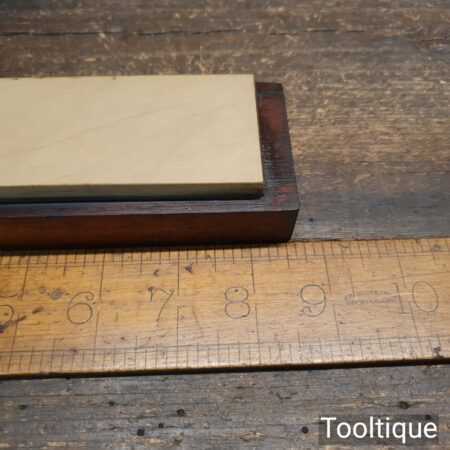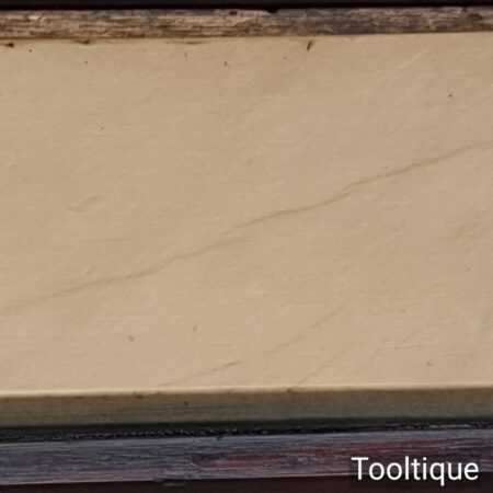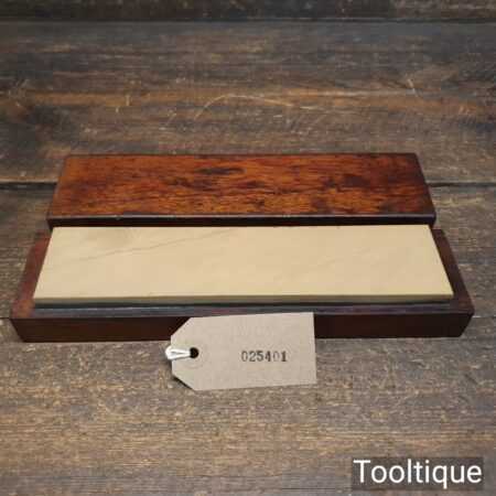 Nice vintage Belgian Coticule fine sharpening stone set into a mahogany box, it’s not often to find these housed. The stone is approx 8 ¼” in length and 1 ⅞” wide. The stone has been lapped flat to give the new owner a fresh start.