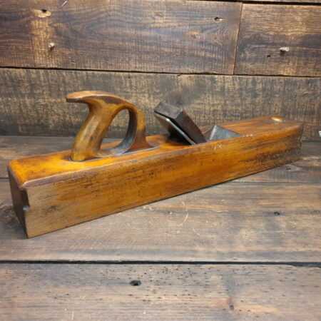 Nice vintage carpenter’s 22” beechwood trying plane with a front strike button in good used condition. Lapped flat and sharpened ready for use.