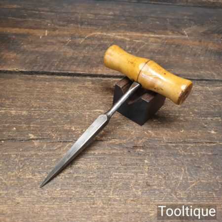 Nice vintage hole reamer or rimer tool with a boxwood handle and in good used condition. The square edges are crisp and it is ready for use