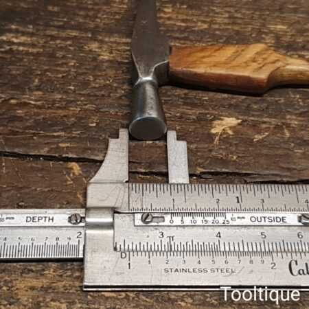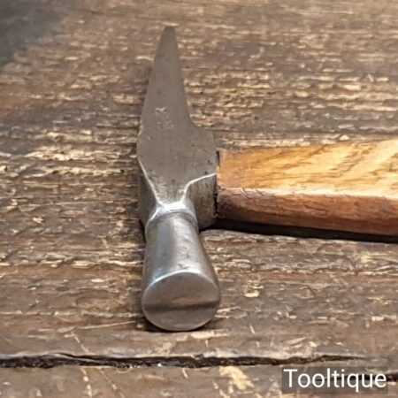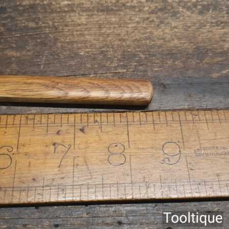 Nice vintage jeweller’s hammer with an oak wood shaft in good used condition. There is a name which I cannot decipher but it seems to be a good quality hammer. Note: The hammer head is tight to the shank.