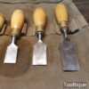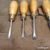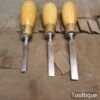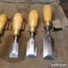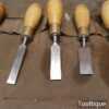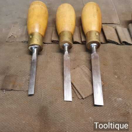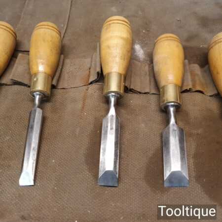 These chisels have been checked to ensure the tangs are seated properly and the handles are solid and fit for use. All refurbished chisels are water cooled during the sharpening & flattening process to ensure the tempering is not affected.