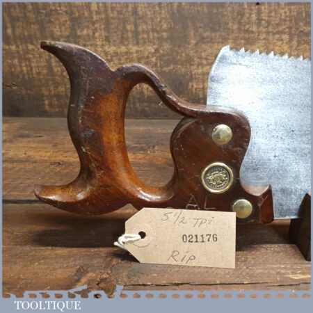 Nice vintage Warranted Superior 18” rip saw with 5 ½ tpi, fully refurbished and sharpened ready for use. As you can see this is a nicely marked saw from the early 20th century and sharpened and set well