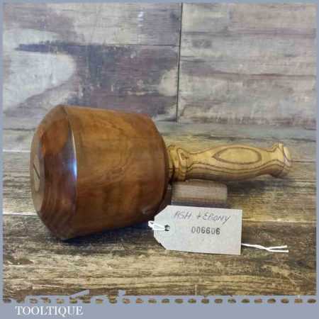 Handmade wood turned old lignum Mallet with a Ash wood handle and ebony wedge. This mallet is approximately 2 lbs in weight and is finished with bees wax.