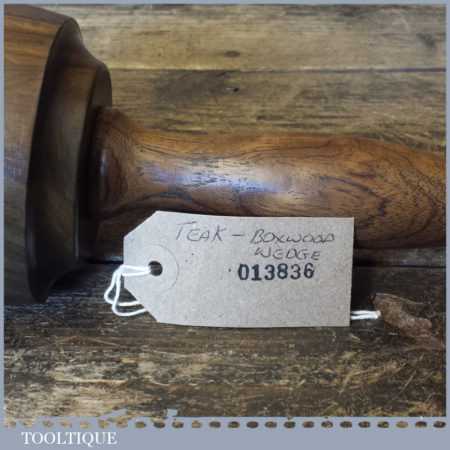 Handmade wood turned old lignum mallet with teak handle and boxwood wedge. This mallet is approximately 2 lbs in weight and is finished with bee’s wax.