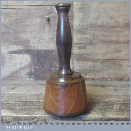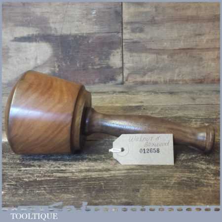 Handmade wood turned old lignum mallet with a walnut handle and boxwood wedge. This mallet is approximately 2 lbs in weight and is finished with bee’s wax.