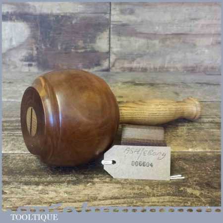 Handmade wood turned old lignum Mallet with an Ash wood handle and ebony wedge. This mallet is approximately 2 lbs in weight and is finished with bees wax.