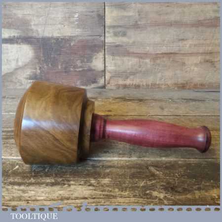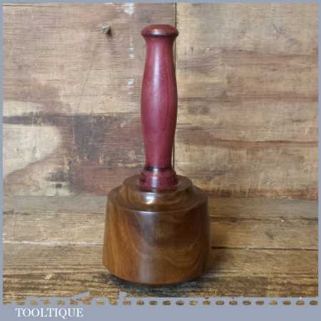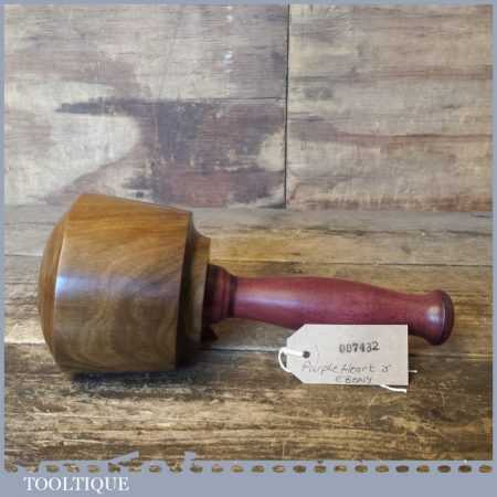 Lignum Vitae woodcarvers Mallet with a purple heart wooden handle secured with an ebony wedge.