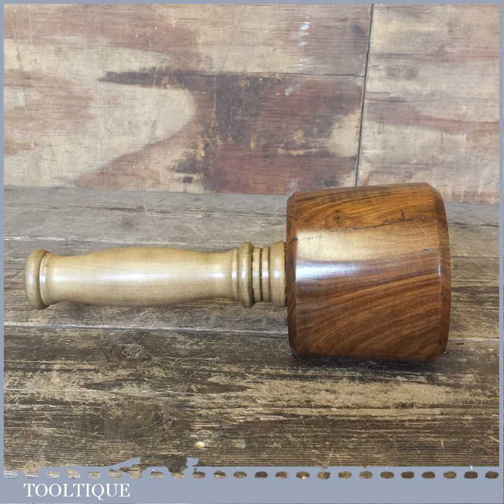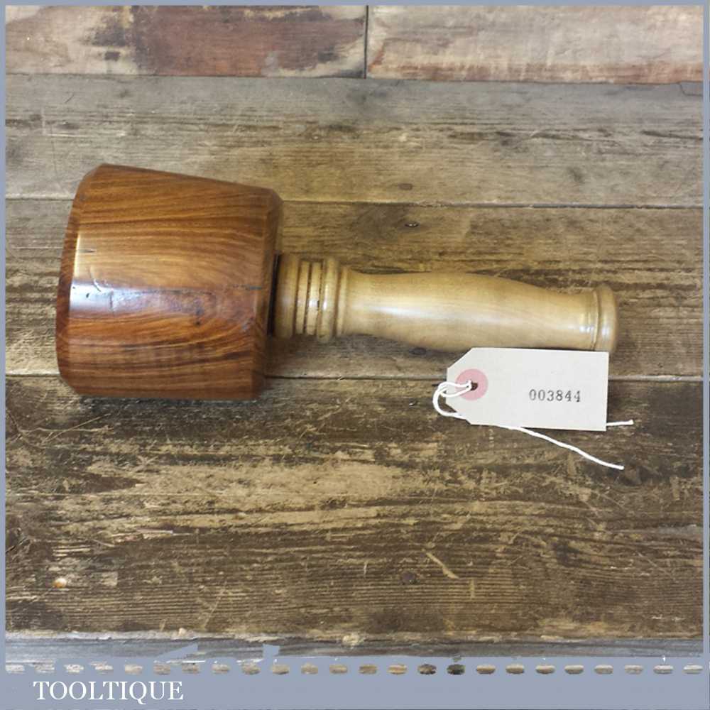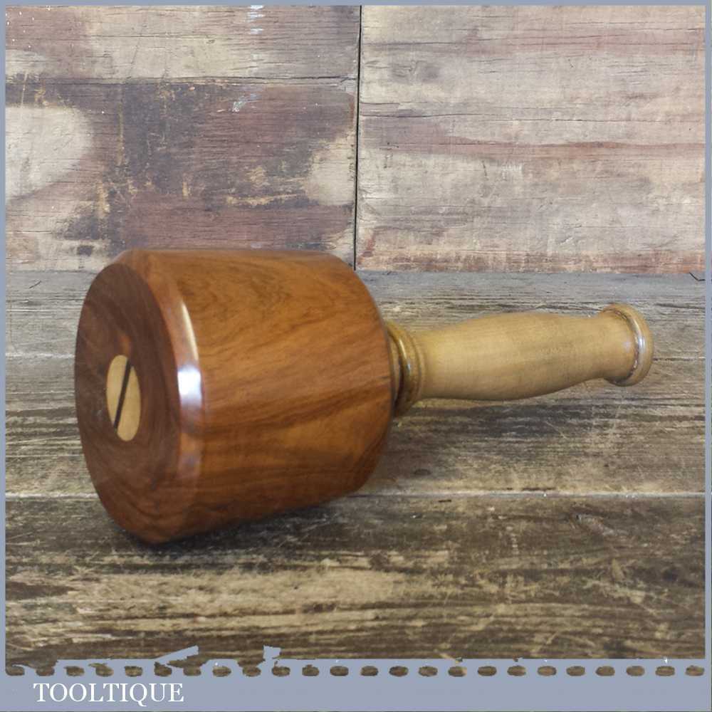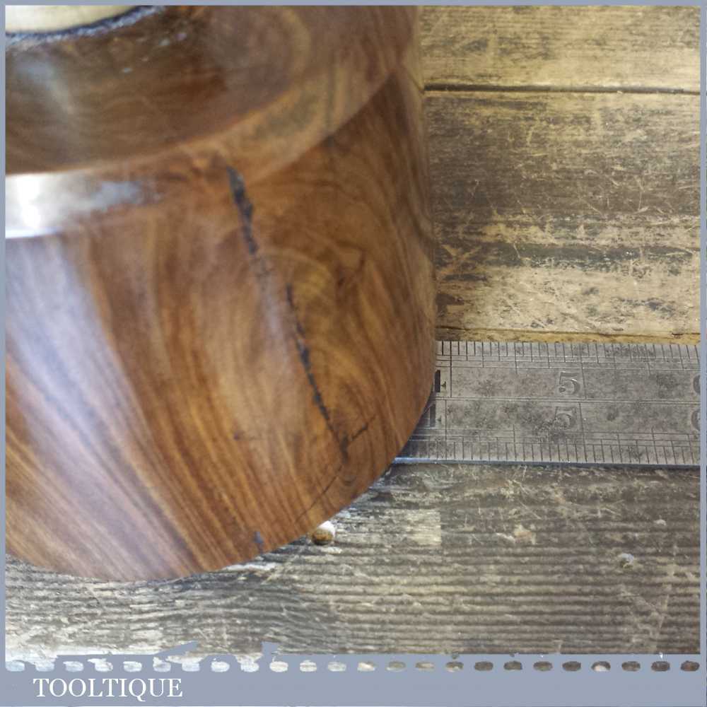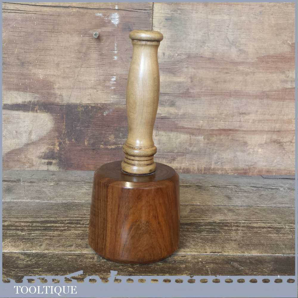Old Lignum Vitae wood turned carving mallet with a good boxwood handle secured with an ebony wedge. These have been polished so they have an extremely smooth finish and polished with bees wax. These are made with a one piece handle which continues through to the opposite end of the mallet head. These feel very good in the hand and have some good weight to them approx 2 lbs. These are made from old lignum crown bowls which ensures they are well seasoned but more importantly comes from the region where the densest lignum could be found before being exhausted. The lesser dense Argentinean lignum took over the market after that and again this is all but gone as it takes so long to grow.