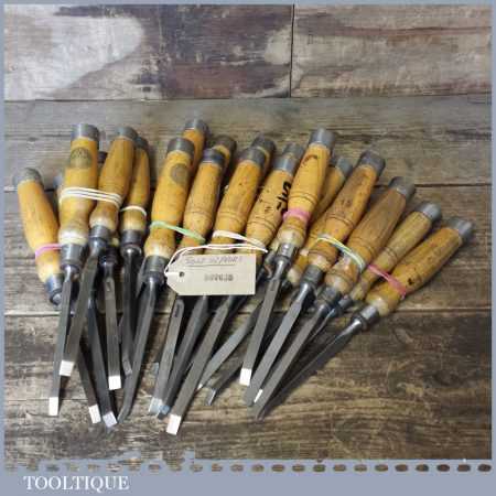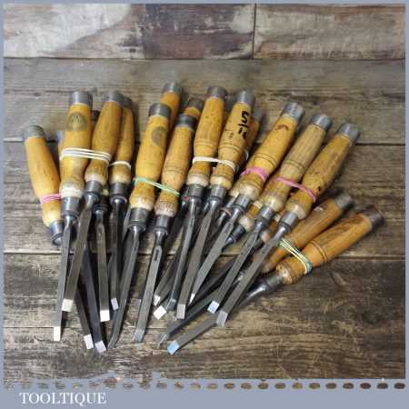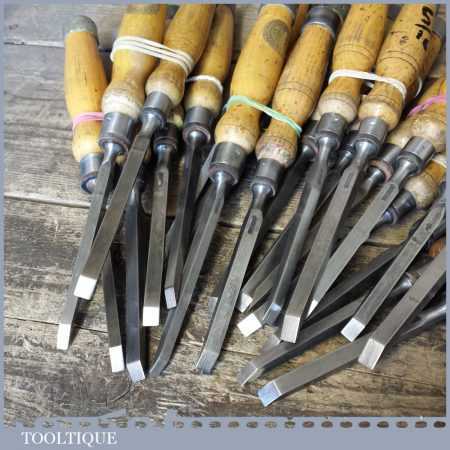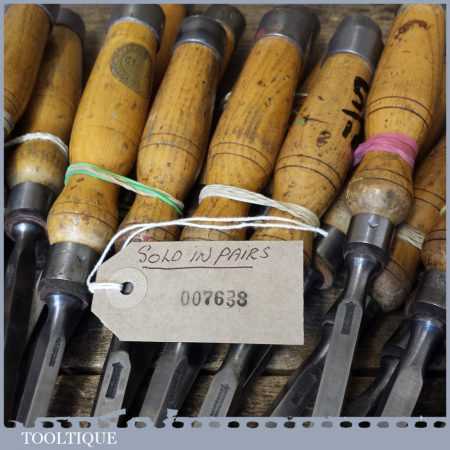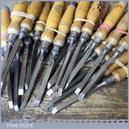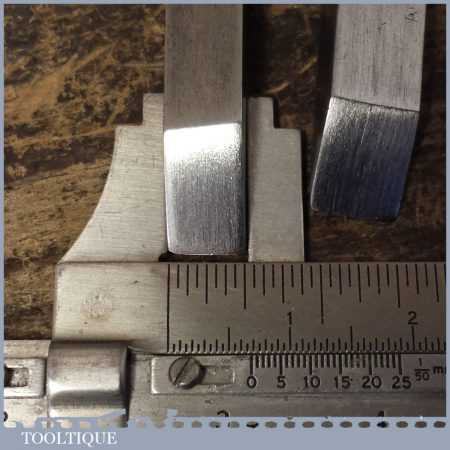 The chisels have been checked to ensure the tang is seated properly and the handle is solid and fit for use. All refurbished chisels are water cooled during the sharpening process to ensure the tempering is not affected. These old cast steel chisels are hand forged and far superior in quality because of the high carbon steel that was used which produces a keener edge, this was also generally used throughout the full length.