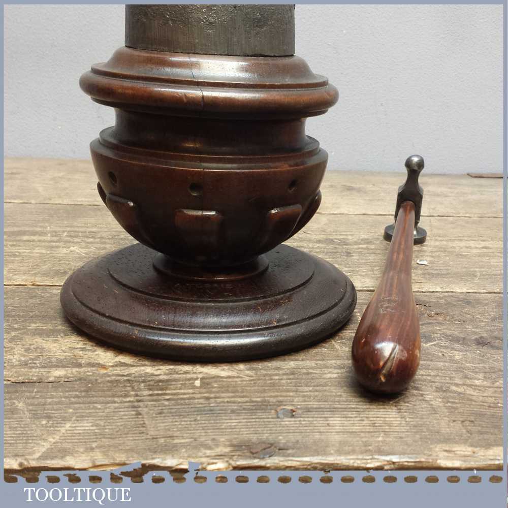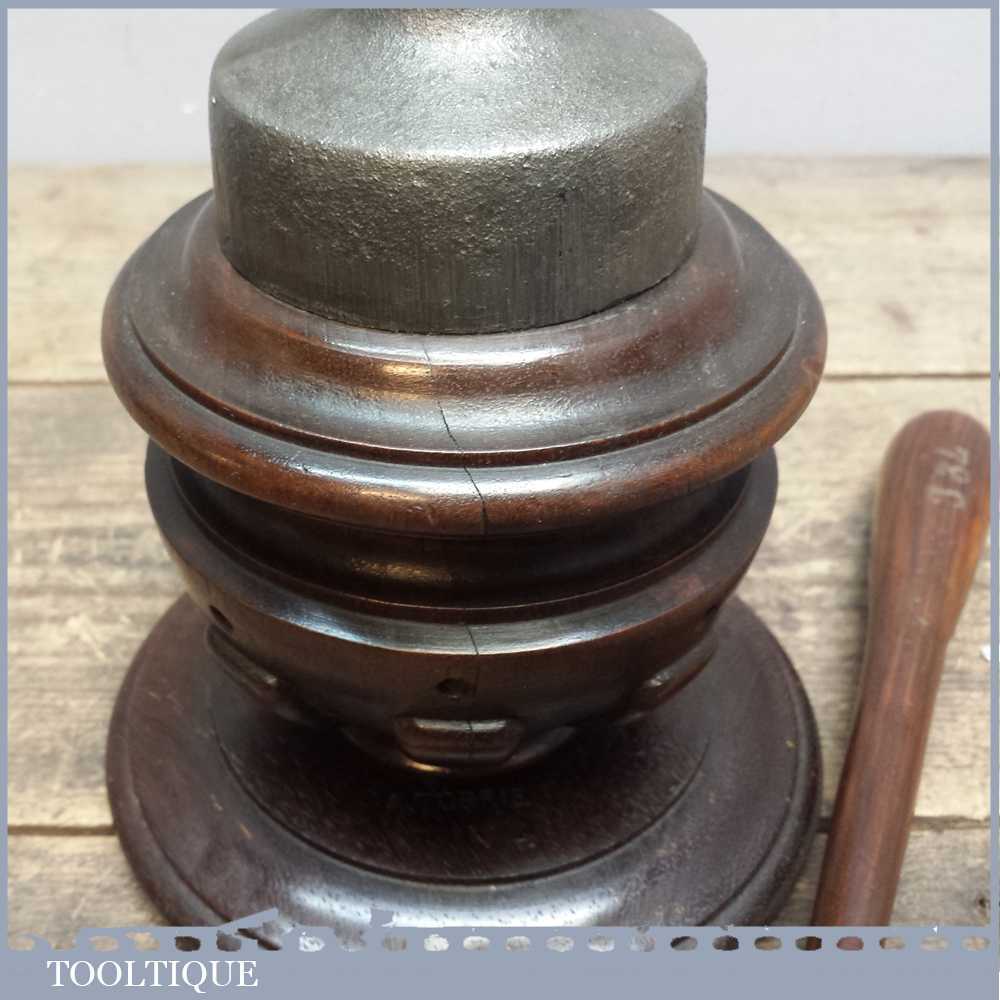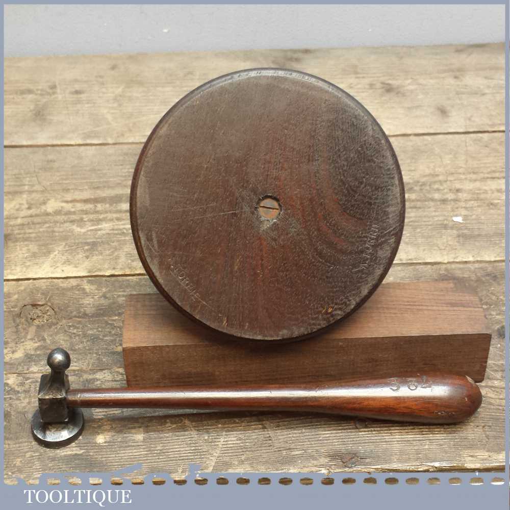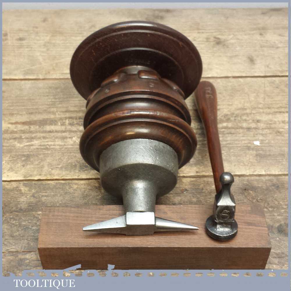 Ornate antique 19th century Jeweller’s Anvil on a mahogany stand with a very small planishing hammer with rosewood handle. This is certainly a set that would grace any tool collection or would be perfect for a jeweller whose work has a sense of history to their design. Note: there is an age crack in the main body but is quite stable.