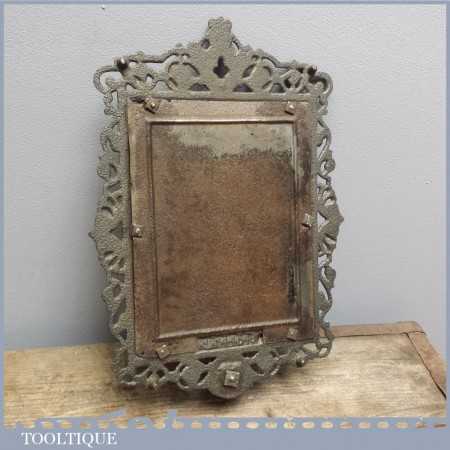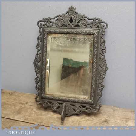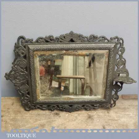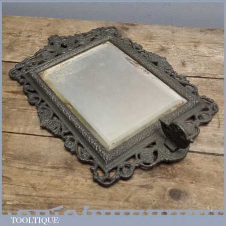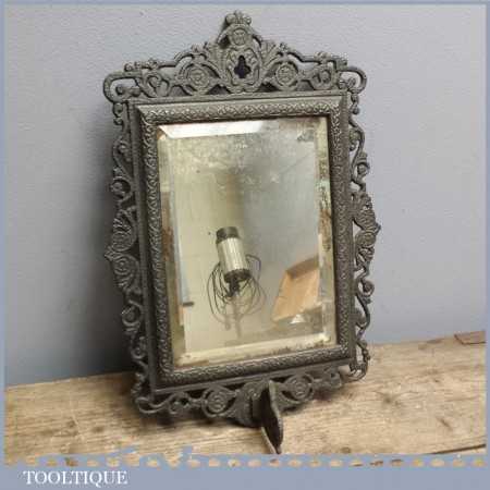 Ornate Antique Victorian distressed mirror with cast iron frame, it looks like this once had a sconce of which is partially attached although can be unbolted.